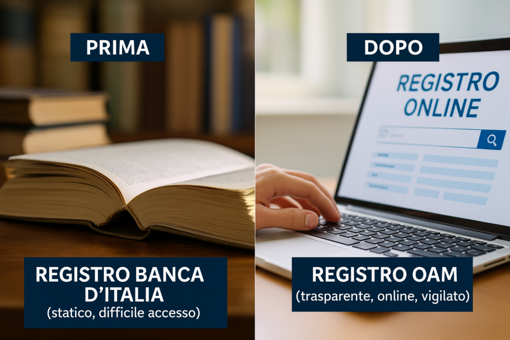 Dal 2024, però, c’è una novità importantissima: il Registro è stato trasferito all’OAM, l’Organismo che già da anni si occupa della vigilanza di agenti in attività finanziaria e mediatori creditizi.